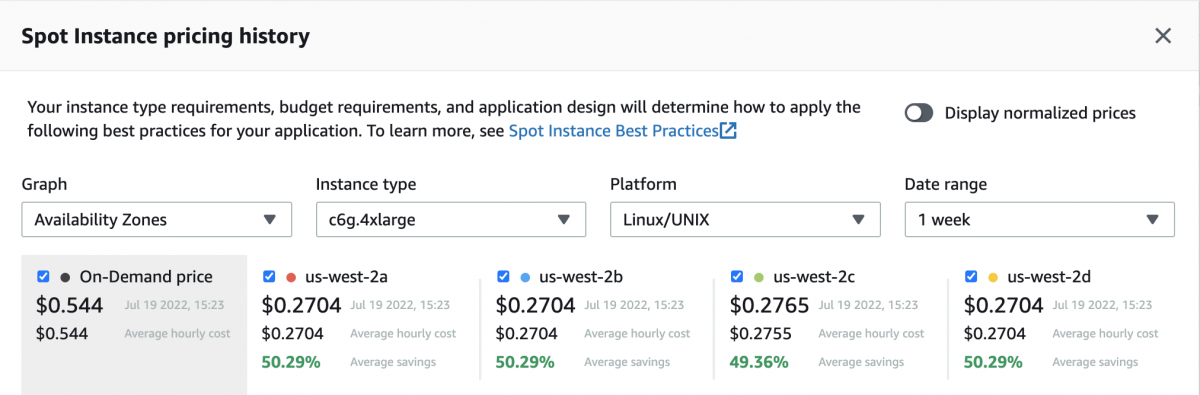 从上面的例子中,我们可以得出这样的结论:尽管引力子实例价格更便宜的随需应变比non-Graviton c5.4xlarge,现货价格更便宜的c5.4xlarge除了一个可用性区域。AWS的客户,一直在考虑使用这两种架构,海洋现在给的选项,在VNG层次,动态地选择自动和最好的cost-availability实例类型。