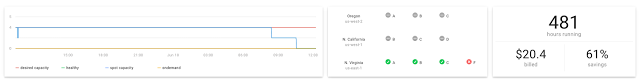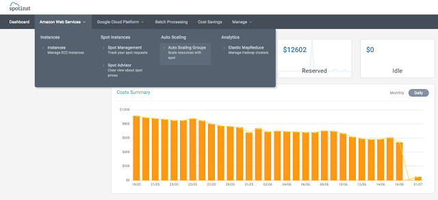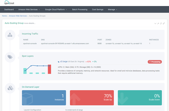 最终,Spotinst反映,在控制台。跟踪运行的小时数和花的钱,当然,储蓄比例对按需使用。