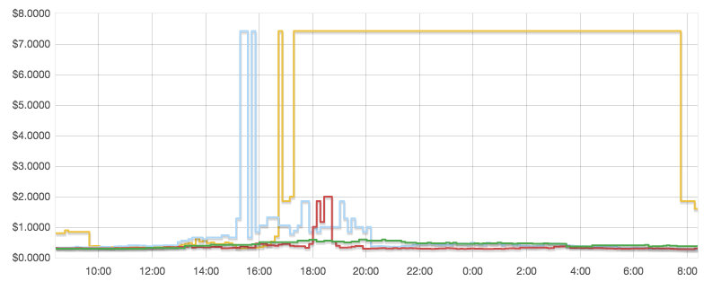 - Spotinst知道考虑现货市场异常现象,例如,如果一个特定的实例类型从一个给定的可用性区域运行“太多”小时价格高于它的需求价格,Spotinst会消除这个实例类型。