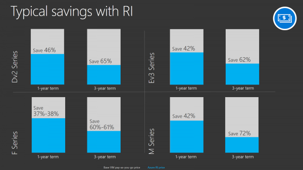 Azure RI价格要便宜大约37 - 46%为一年便宜,60 - 72%任期三年(价格范围实例家庭有着不同的定价)。这些储蓄相当巨大,但他们可以更大。