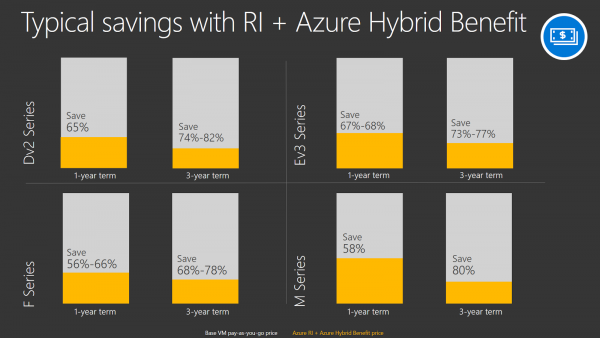 如果用户利用Azure混合受益,这些储蓄上升到56 - 68%一年期条款和68 - 82%为3年。如果你不确定什么Azure混合的好处是完全或如果它可能适用于你,退房微软Azure混合受益FAQ页面。