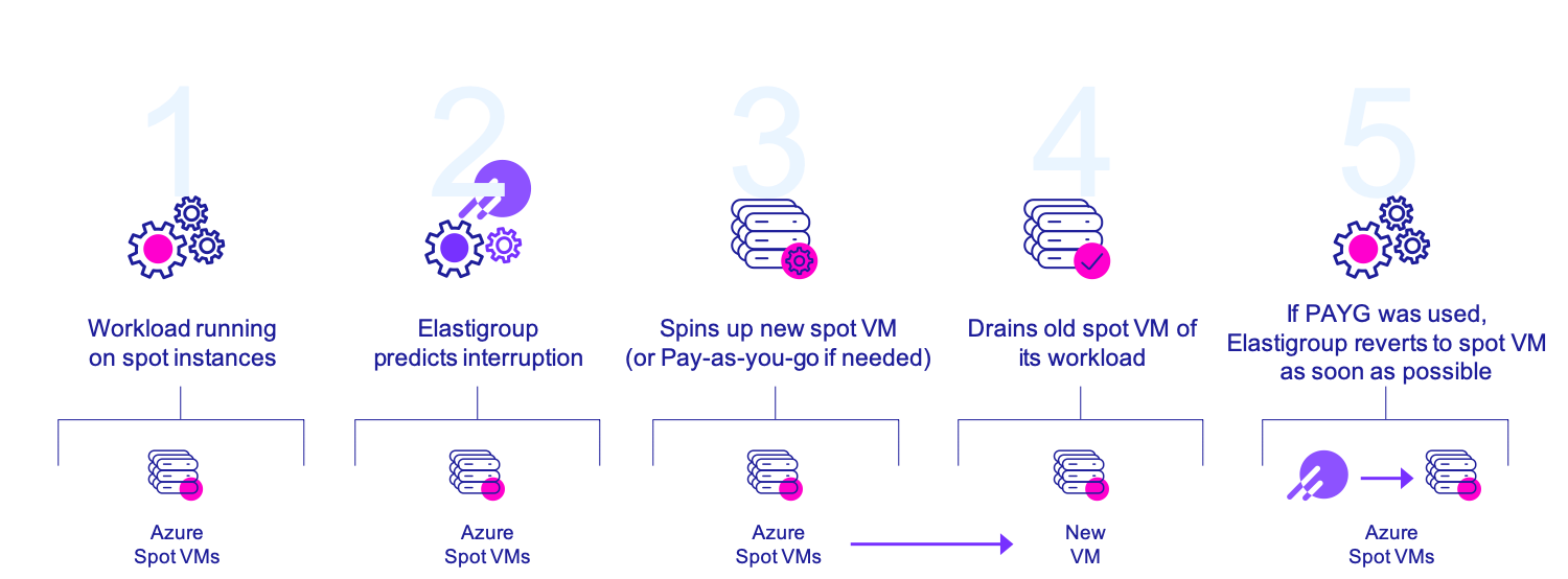 所有公共云提供商需要额外的计算能力,通常被称为现货实例,服务需求激增。抵消了金融闲置资源的损失雷竞技rabet官网AWS, Azure和谷歌云所有这些超额薪酬提供乌特在大大降低价格。然而,这些缺点包括定价的年代锅实例波动基于供给和需求结果是,工作负载可以驱逐任何时间,在Azure vm现货的情况下,与只是一个30秒的通知。幸运的是,很快我们将会看到,Elastigroup能够predict这些搬走、优雅的排水工作负载转移到另一个地方或现收现付制VM,从而避免任何中断或性能的影响。