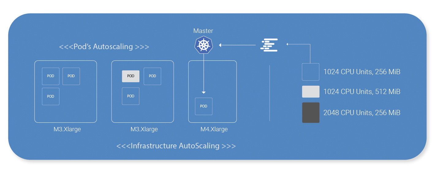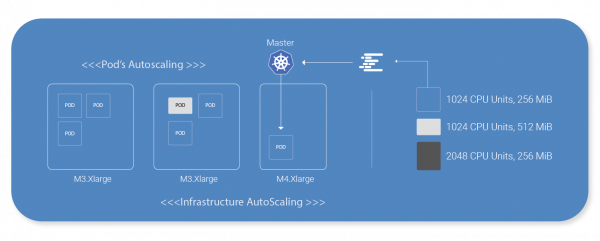 是建立在一个Kubernetes拓扑Kubernetes主负责维护所需的状态对你的集群。扩展容器时,您需要确保它有效尺度。让我们看一个例子:说你k8集群运行10的节点c3.large(2个vcpu和3.8直布罗陀海峡的内存),10的节点c4.xlarge(4个vcpu和7.5直布罗陀海峡的内存),所以你的全部个vcpu是60 * 1024=61440 CPU单元和总内存113年镶条。