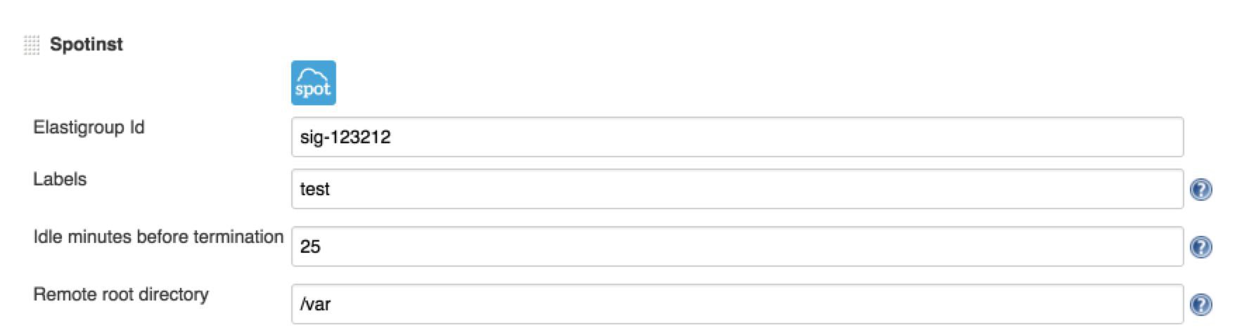 你应该设置为利用Spotinst詹金斯插件!詹金斯主会自动启动新的实例通过Spotinst API,未使用的,将终止实例。