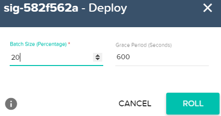 - 选择你的批处理之间的大小比例和宽限期部署然后单击“滚”