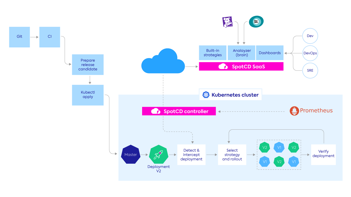 流行的市场模式保持持续交付工具Kubernetes分开。现货,NetApp反思这种方法和扩展的功能Kubernetes持续交付与海洋CD。海洋CD Kubernetes-native解决方案,专注于现代程序交付通过自动化的最痛苦的方面关键任务部署和验证过程。与海洋的CD,开发者可以自由推动代码充满信心而DevOps轻松地维护治理和SLOs。