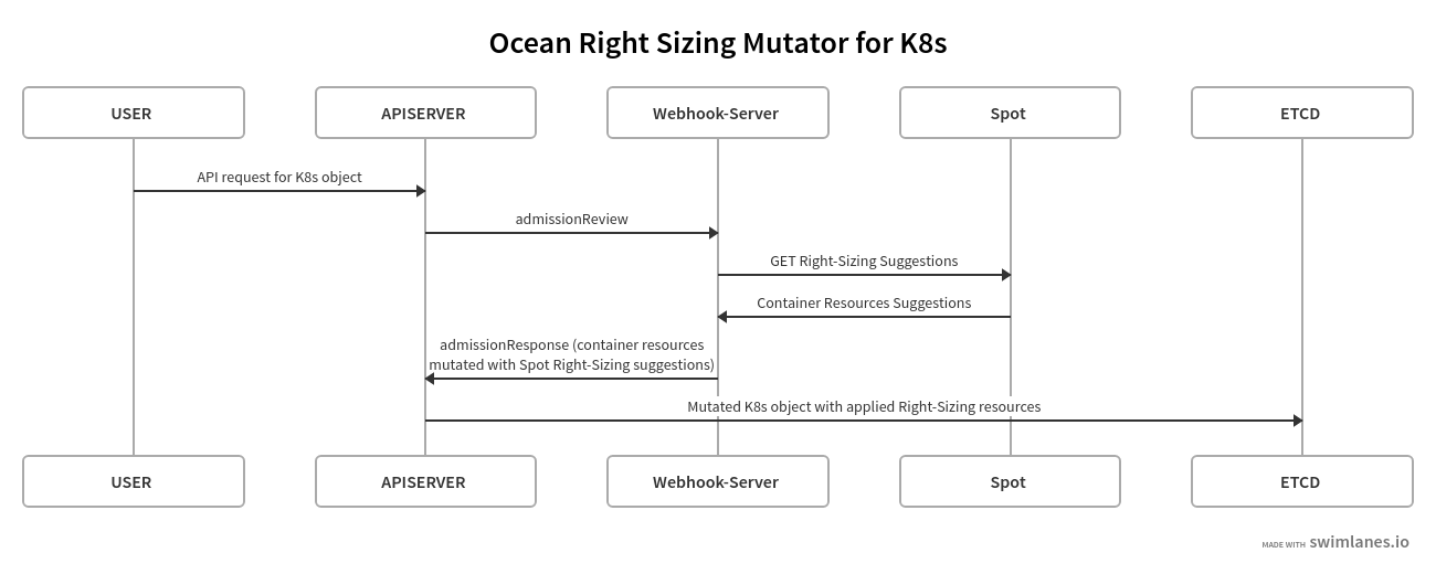 实现这些建议没有任何额外的改变用户管道将应用程序部署到集群k8,我们开发了一个webhook服务器,ocean-right-sizing-mutator听变异人的请求,与之交互海洋裁员API和变异资源定义如果是,百分比涨幅,低或高于海洋API所给予的建议。的自述项目的文件记录了如何安装webhook服务器集群,以及如何注释您的部署webhook会变异。