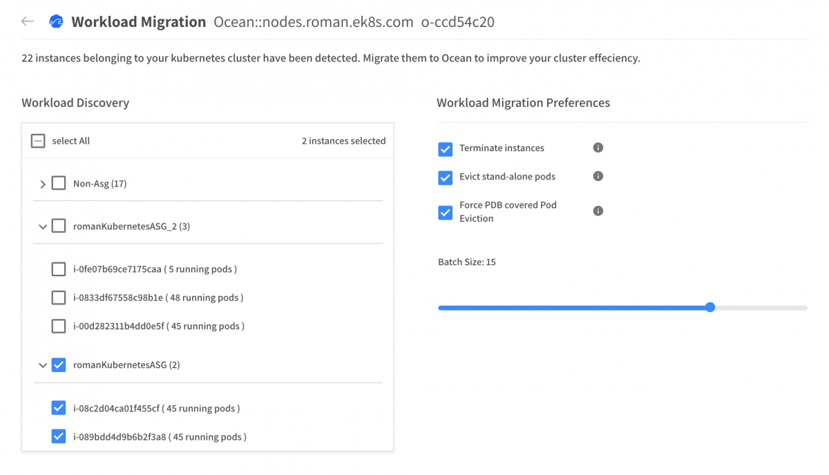 从今天开始,每一个过程Kubernetes集群的导入Spotinst海洋是完全自动的。海洋会自动消耗现有的工作节点,,分批,并启动新的现货实例管理适应集群的豆荚,同时考虑任何要求和位置约束。