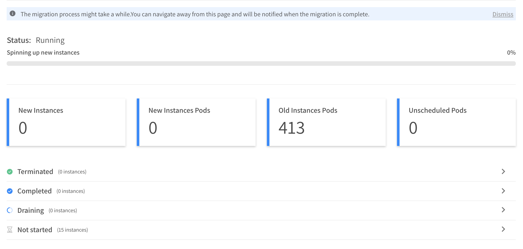 新迁移工具旨在最小化应用程序停机时间,并减少手动操作的必要性。过程是完全透明的,对用户可见,具有可配置选项,如批量大小、独立的豆荚驱逐,auto-termination。