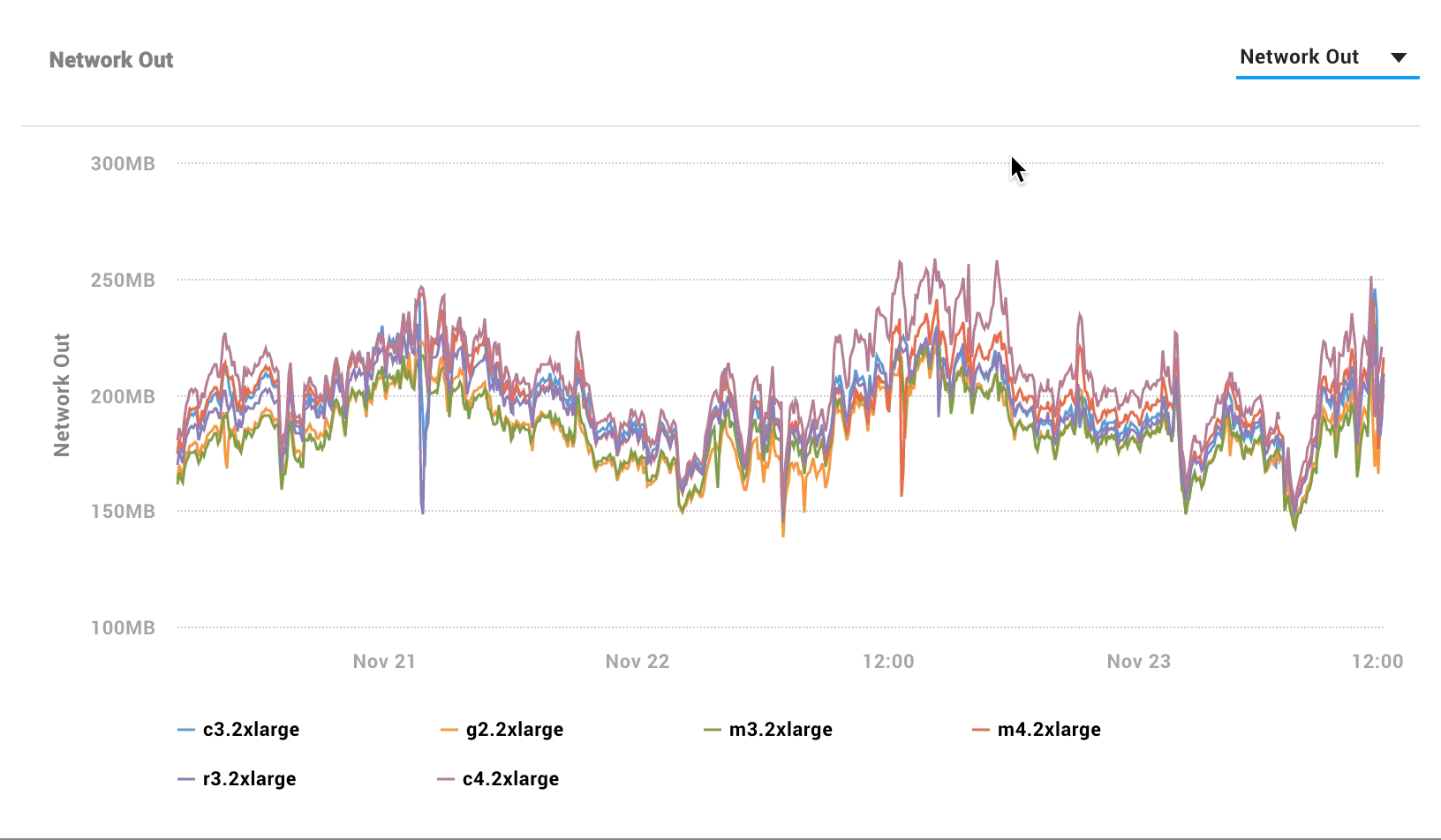 现在可以使用新的指标在集团的“统计数据”视图中,除了“CPU利用率”你也可以看到每个实例类型的平均网络I / O。