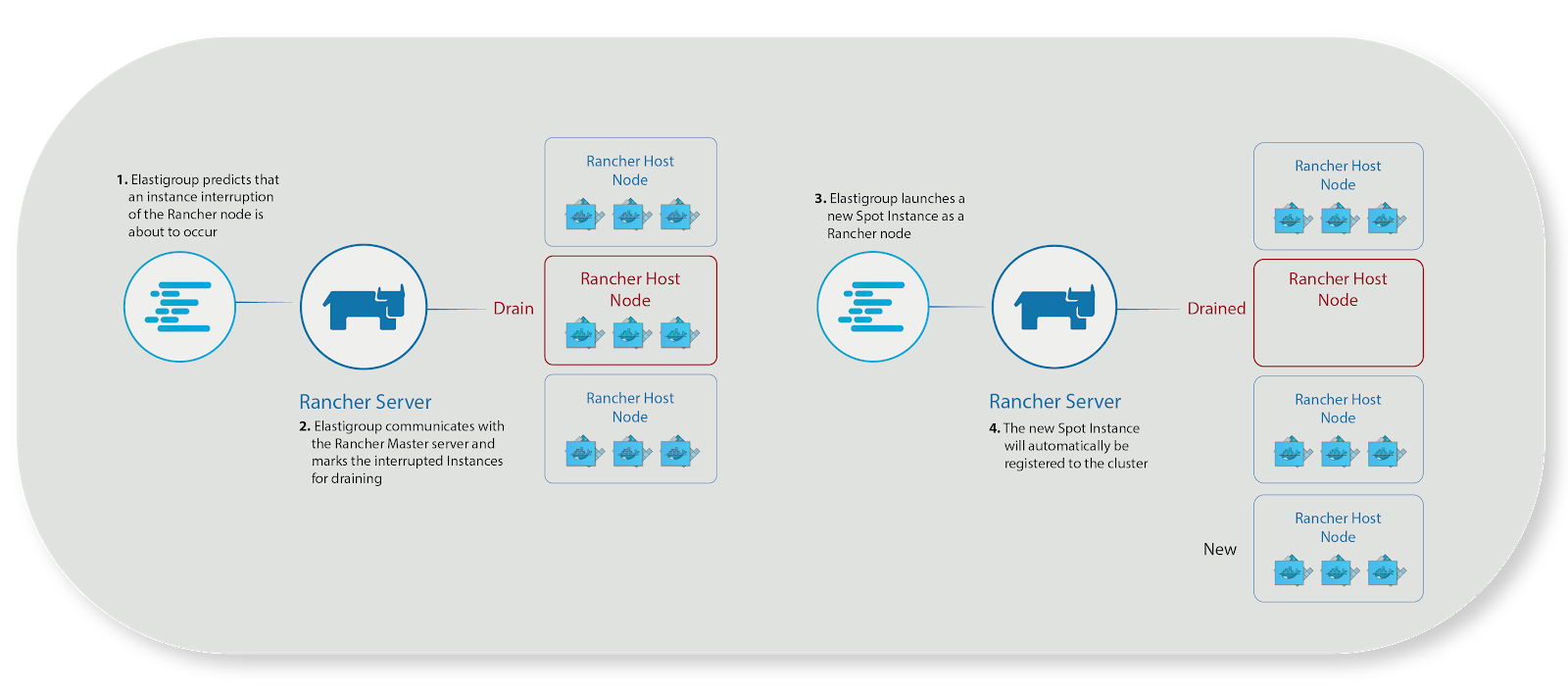 Spotinst平台的另一个好处是,与农场主的集成,它迅速成为更容易管理容器部署。如果容器失败,VUALTO团队可以简单地旋转,容器Spotinst自动天平的另一个地方。这意味着不会有停机的风险VUALTO客户即使一个容器必须离线。每当Spotinst执行替换一个实例,它会自动与牧场主API来运行容器搬迁到不同的主机。然后,它将删除和清除失败的主机。