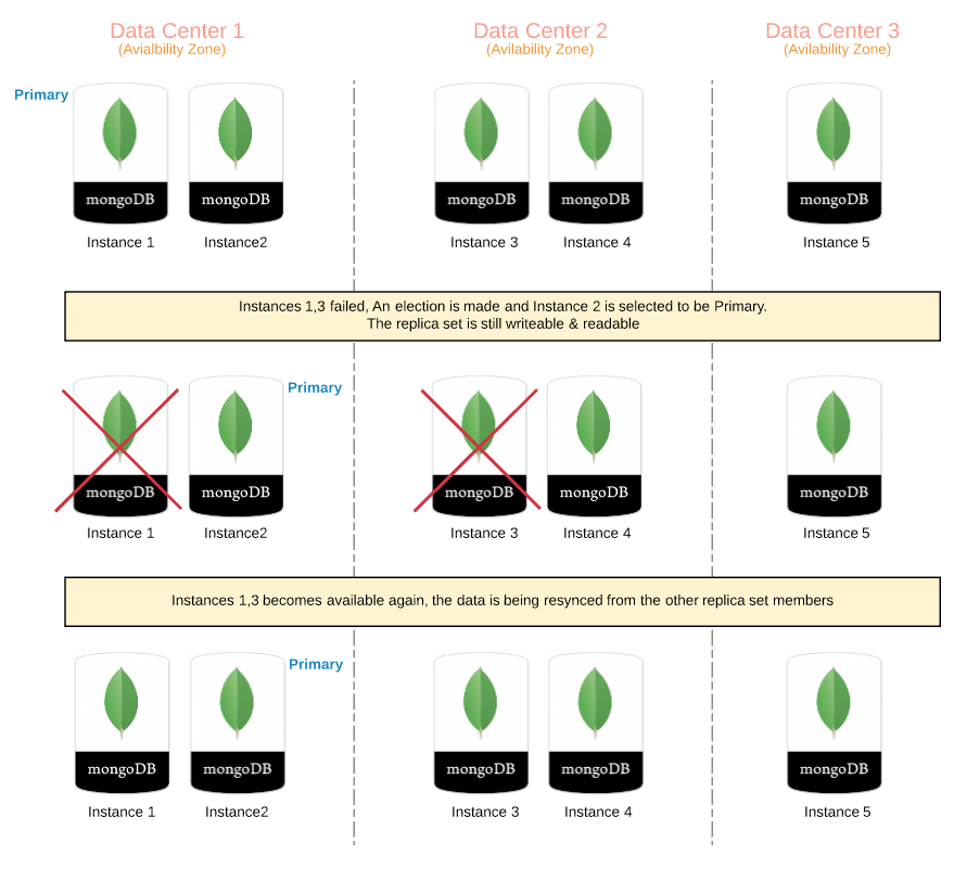 注意:当需要选举直到新的主要当选,副本集停止接受请求。最小化的主要替代品,最好的做法是至少1按需运行实例并设置其优先考虑的初选到1000。
