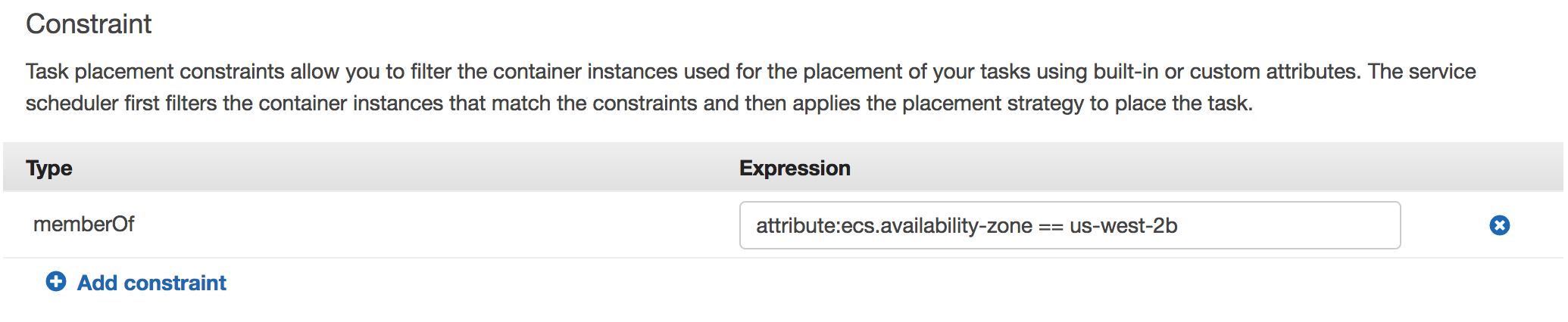 当这样做,你必须使用集群的查询语言。在下列的示例中,我们将配置当前任务运行在可用性区域“us-west-2b”。