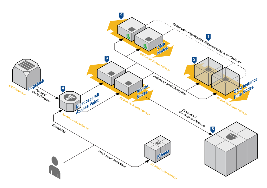 如果你想对现货市场采取额外的预防措施失败,ElasticSearch有一个整洁的特性Shared-Allocation-Awareness。您可以启动位置和按需到Elasticsearch集群实例,给他们自己的rack_id(例如现货实例将被定义为rack-id = 1和按需rack_id = 2),副本分布位置和随需应变之间的关系。这将迫使复制存储至少一组完整的“按需”节点上的数据。