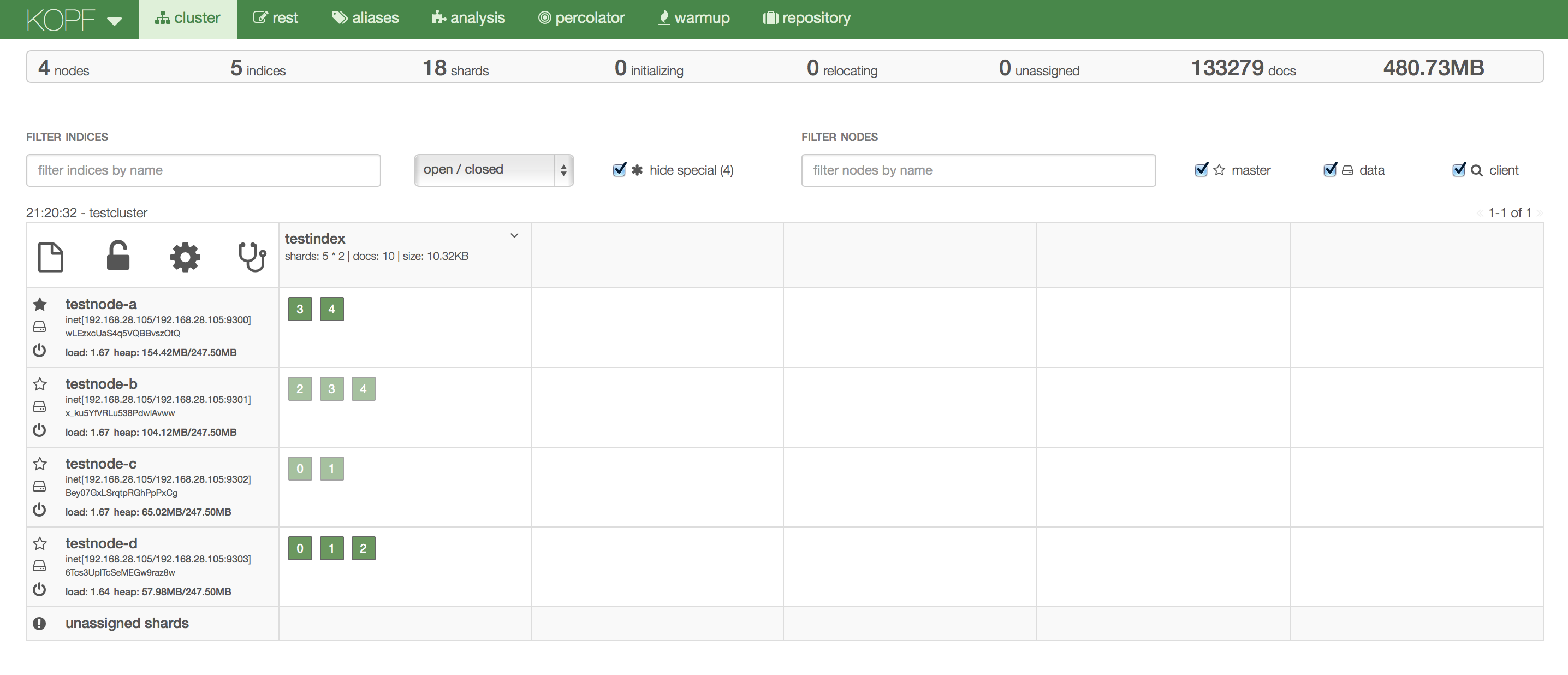 我们建议安装科夫插件是一个伟大的工具来管理和执行操作弹性搜索集群。