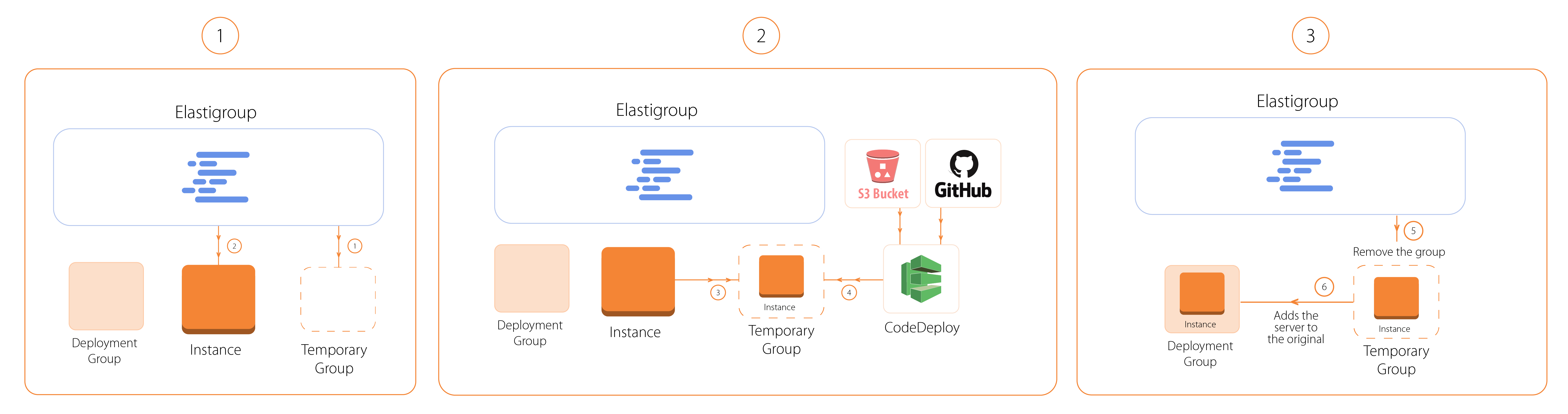 CodeDeploy处理部署组使用修正,修正包含源文件的一个版本,Elastigroup将部署。