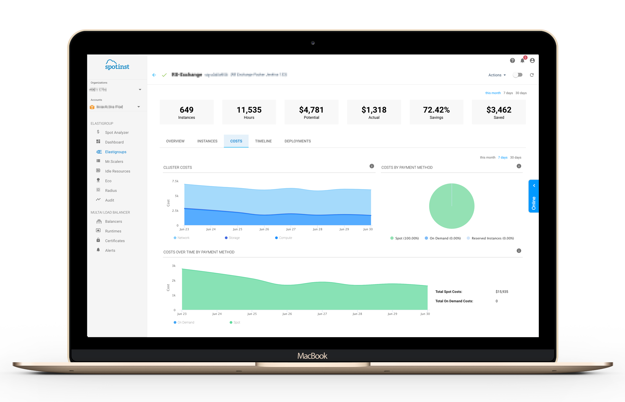 Elastigroup提供了一个指示板,允许DevOps和软件工程师监控和跟踪他们的复杂的异构k8集群和获得信心对于任何供应活动。
