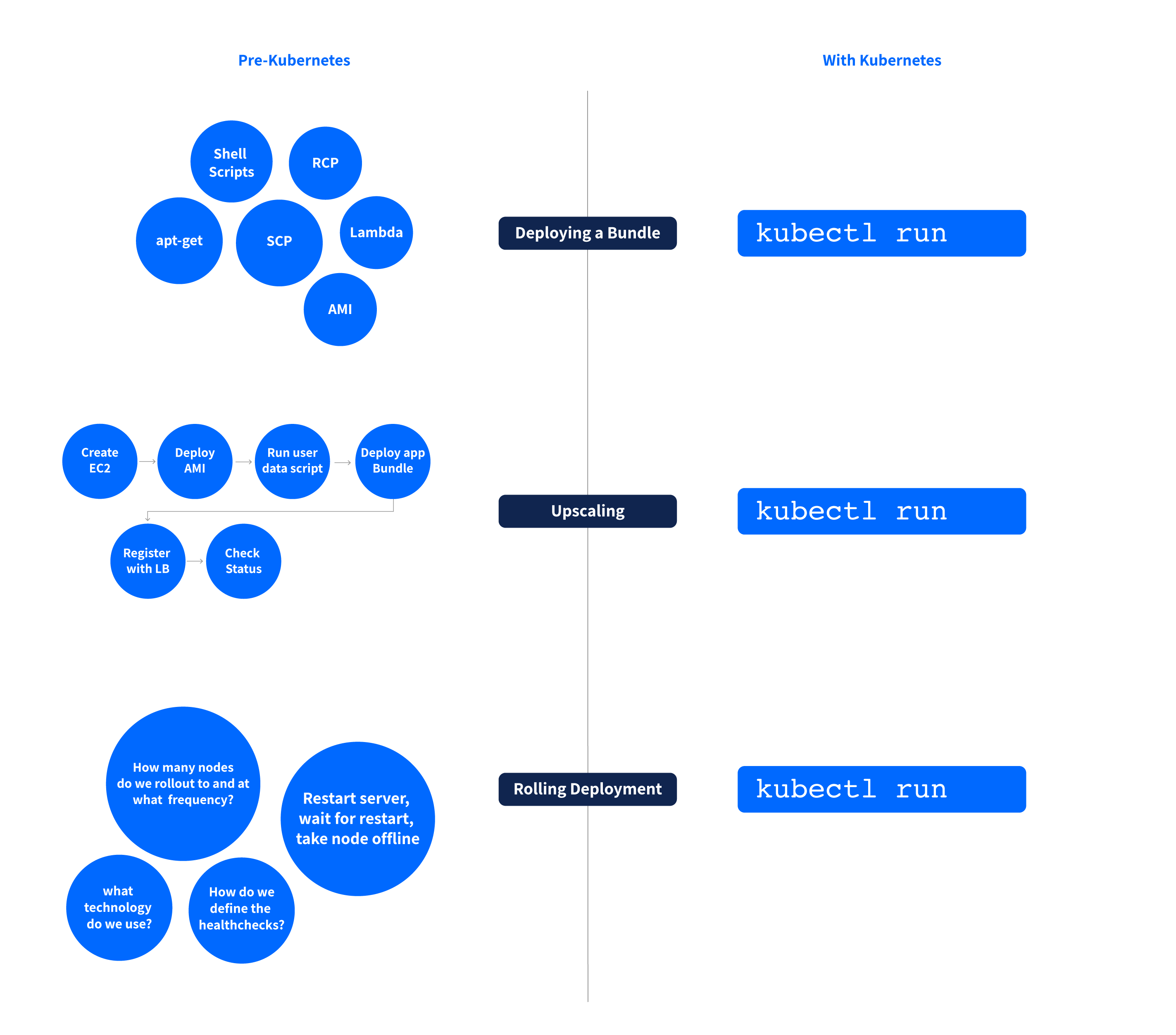 pre-Kubernetes世界,不仅基础设施团队必须设计和实现功能监测和自动伸缩,但根据软件团队的决策,他们也必须有一个更深层次的软件堆栈的知识。