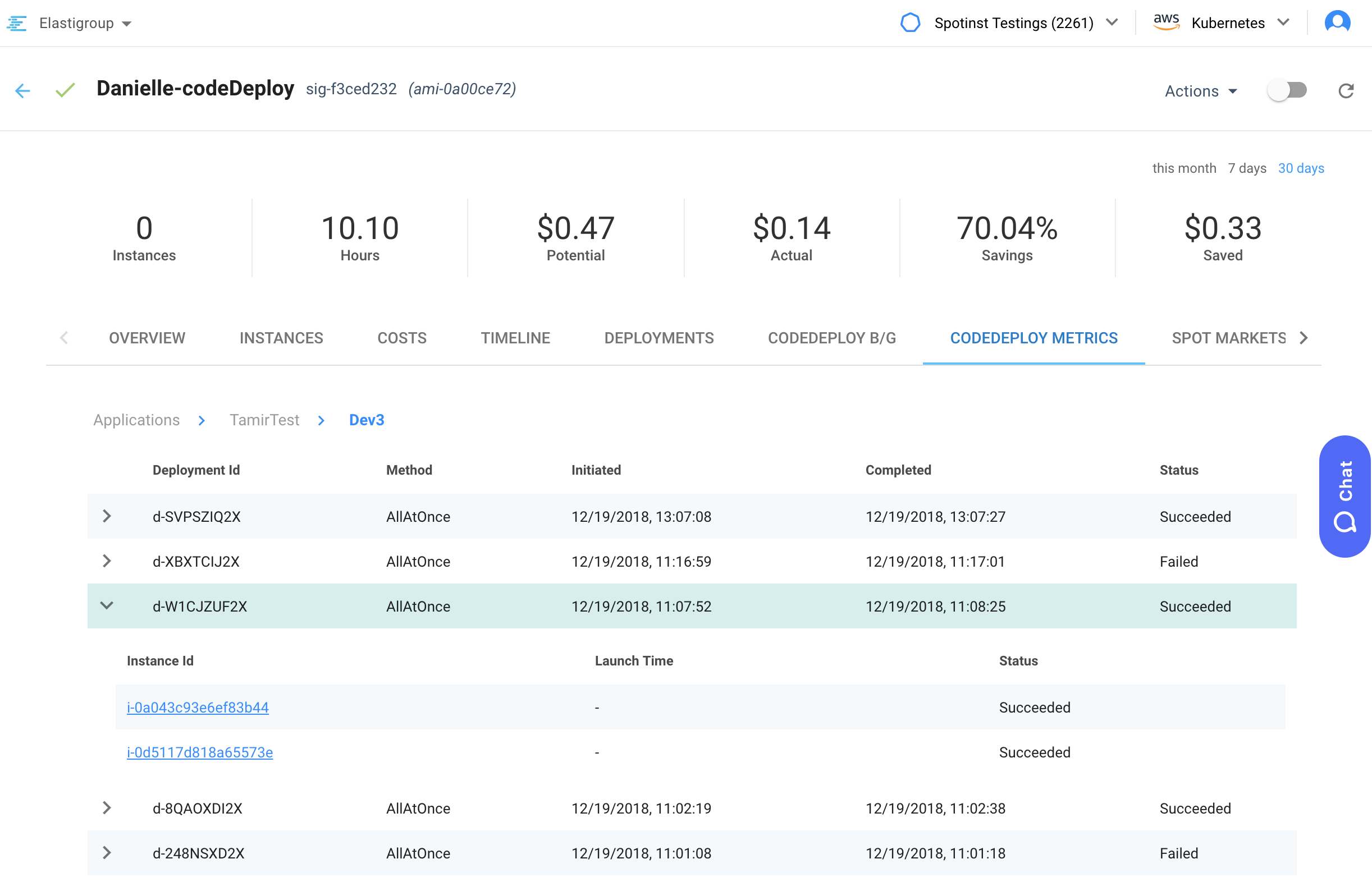 我们很高兴宣布改进Elastigroup CodeDeploy集成。现在你CodeDeploy Elastigroups将显示额外的统计数据对你CodeDeploy等组织的部署方法,失败/成功部署,所有历史部署。这种改进将提供更好的可见性和见解CodeDeploy是如何被使用的。