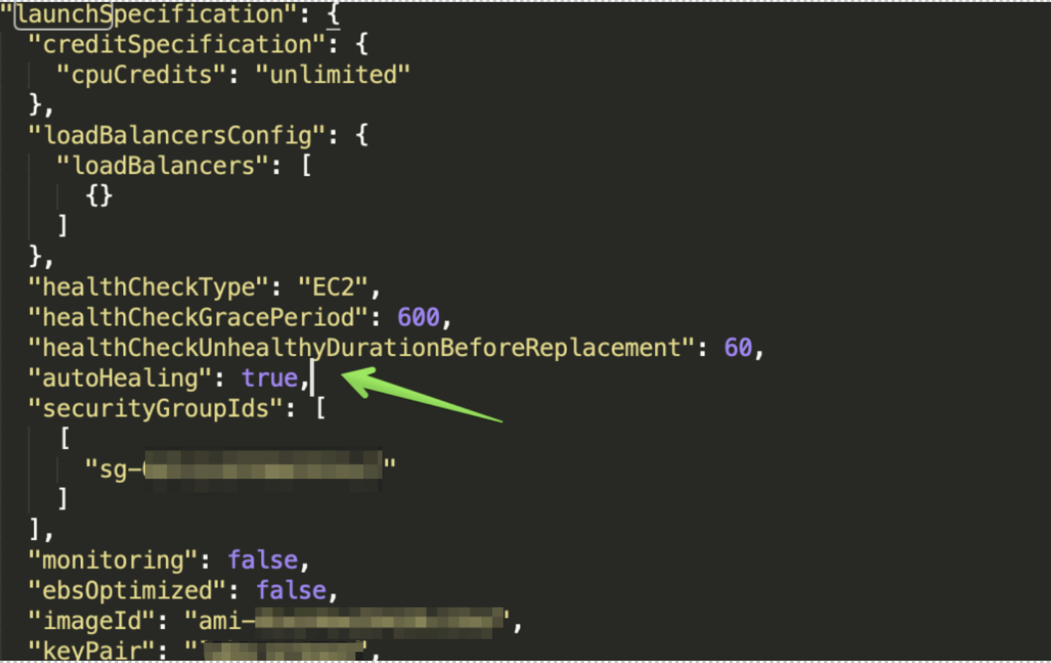 如果你设置autoHealing参数是错误的那么Elastigroup不会取代不健康的实例。如果设置为true(缺省值),那么所有不健康的实例将自动替换。
