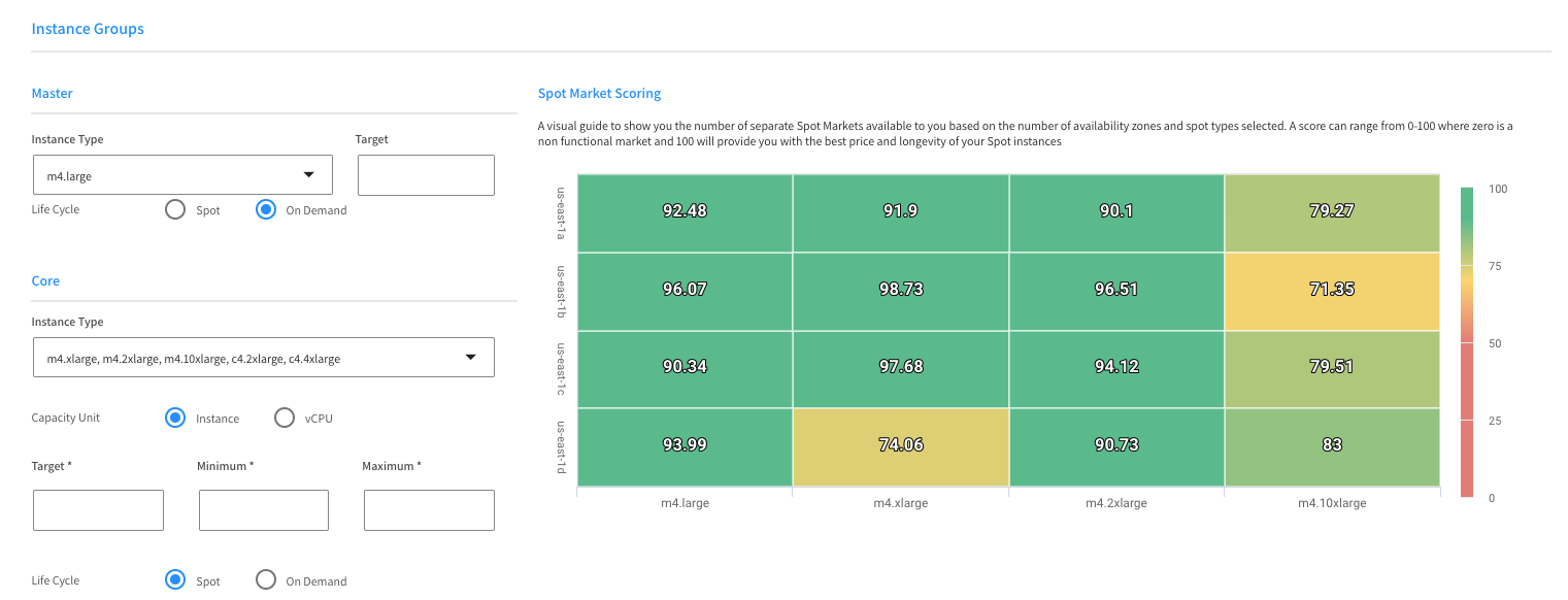 使用这个新创建向导,您可以找到best-priced &高度可用的现货市场实例,使用Elastigroup得分表,选择EC2的经验和建筑EMR实例组简单和容易的。