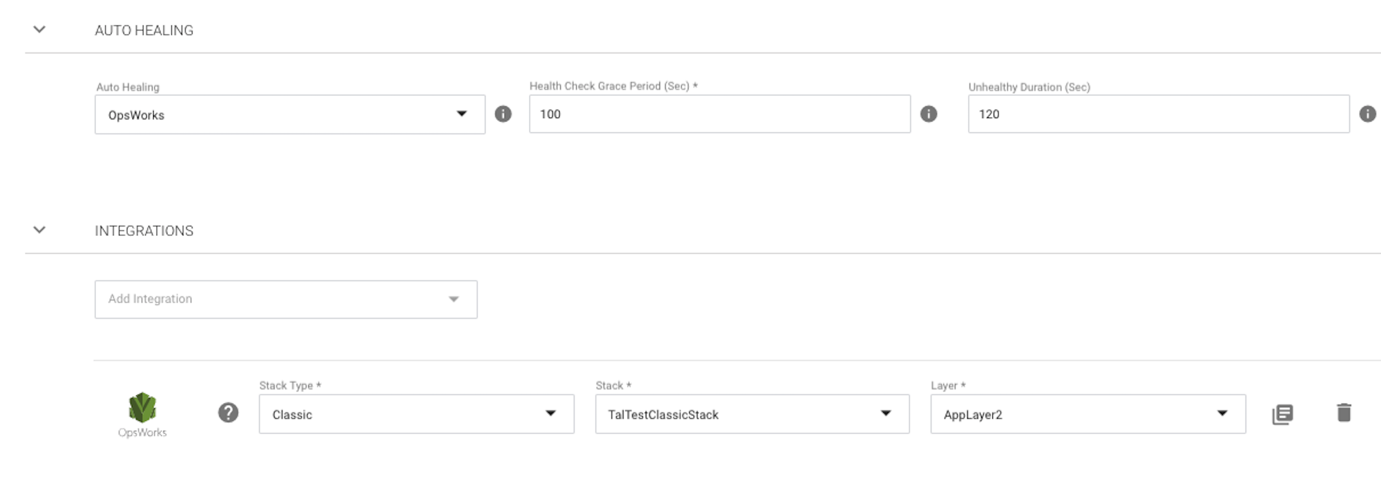 我们很高兴宣布Elastigroup OpsWorks集成现在允许用户添加新的和现有Elastigroups健康检查。Elastigroup使用健康检查来确定在某些情况下需要提前更换。这个新的增强允许您使用OpsWorks健康检查作为扩展决策的基础,使您的应用程序有弹性。其他健康检查选项包括EC2和ELB健康检查添加到一个OpsWorks Elastigroup,编辑配置和向下滚动到汽车治疗部分和为汽车选择OpsWorks治疗类型。结论设置通过指定一个健康检查宽限期和不健康的持续时间并单击NEXT完成更改。