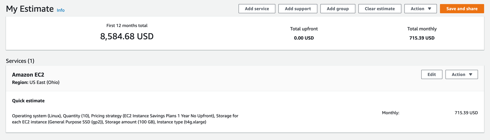 计算器现在提供了一个估计基于您所选择的服务配置。现在,您可以执行以下操作: